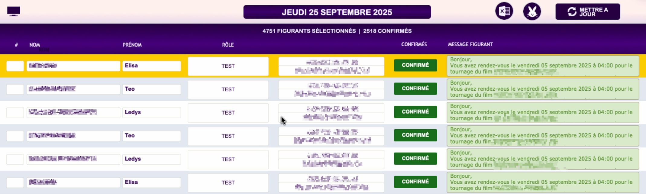 En envoyant un simple mail aux figurants choisis, vous recueillez toutes leurs informations